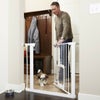 1953年から人とペットのための商品を作っているメイドインUSAブランド!ノースステイツ初のスモールドア付ペットゲートが新登場です。Tall Pet gate Passageは、あなたのペットを安全な場所に保管しておき、簡単なプッシュでしっかりと簡単に閉まります。このヘビーデューティースチールゲートの色は美しいマットブロンズで家のインテリアにもばっちり合うカラーです。。このペットゲートには、自由にスイングする専用の小さなスモールドア(24x 20.3cm)があり、小さいわんちゃんや猫ちゃんならゲートをオープンせずにこのドアだけでペットが自由に出入りできるようになっています。スモールドア自体も特許取得のグリップ・アンド・ツイスト・ラッチロックでロックできますので使わないときはロック、使用するときはスイングさせることができるので安心してご利用いただけます。子犬や複数のペットがいる世帯に最適です。 このペットゲートの主な特長は、あなたとあなたのペットが簡単に通り抜けることができるように、幅広い53.3cmのドア開口部を備えています。 このペットゲートの取り付けには、テンションノブ(突っ張り棒金具)を使用してゲートを固定します。それは含まれている2つのエクステンションを使用して75.6最大99cmの幅の様々なドアの底にあるスイングコントロールレバーは、ゲートを一方向または両方向にスイングさせることができます。大きなハンドルのデザインは、快適なグリップのためにあなたの手のひらに簡単に収まります。 部屋の開口部または出入口に合うサイズで、76.2cmの高さがあります。これよりも大きい場所に取り付けたい場合は別売りの15cmと30.5cmのエクステンションを使用して、ゲートのサイズをカスタマイズできます。サイズ:幅75.6から99cm高さ76.2cm