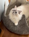 猫ちゃんが楽しむウールでできたベッド!バスケットのデザインをしたベッドです。洞窟は安全で暖かい避難所を提供し、猫ちゃんが安全にお休みするのを助けることができます。 長さ約50.8cmの洞窟は、6.35kgまでのペットに最適です。