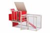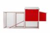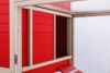この小屋は、換気装置が組み込まれた2つのレベルの居住空間、簡単に採卵できるヒンジ付きのふた付きの1つのコンパートメントの巣箱、2つのねぐらバー、掃除が簡単な亜鉛メッキの引き出しトレイを備えています。