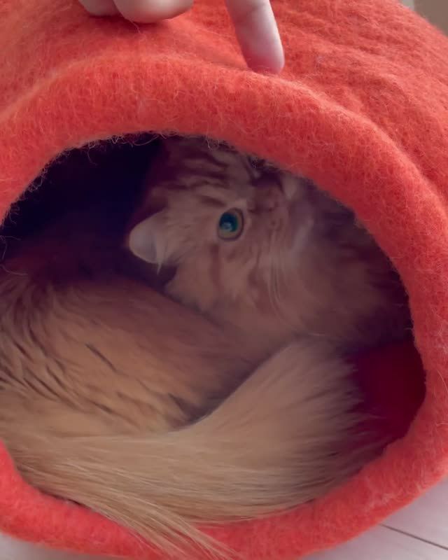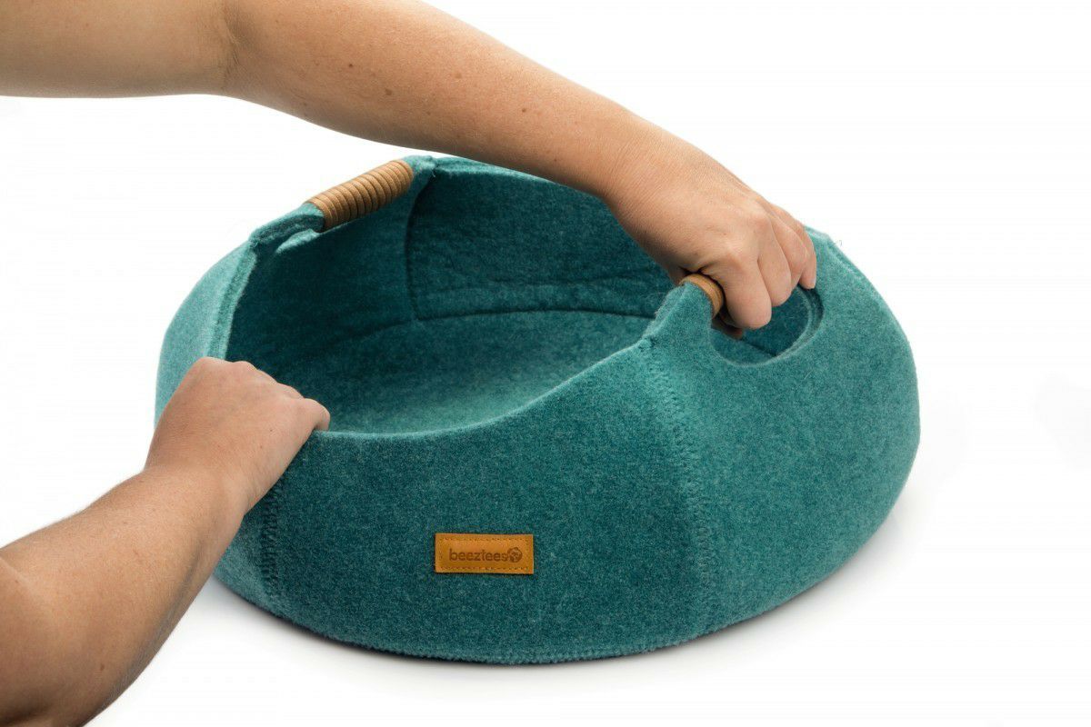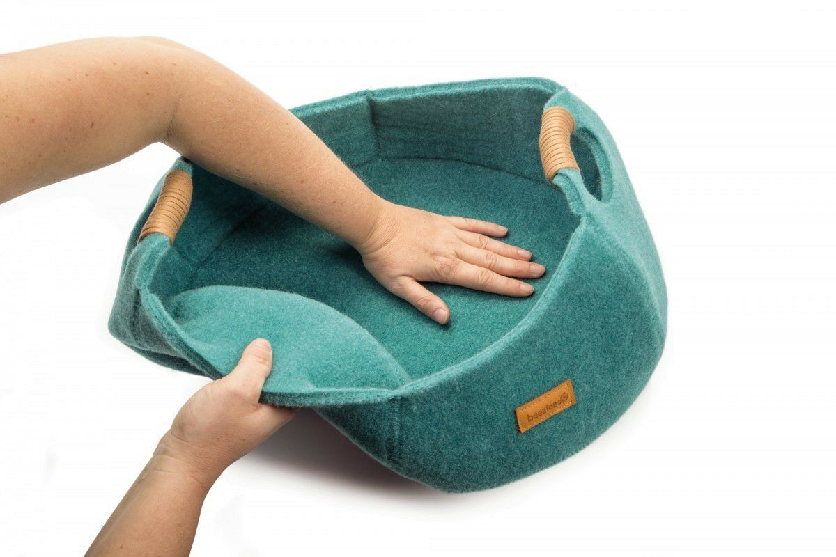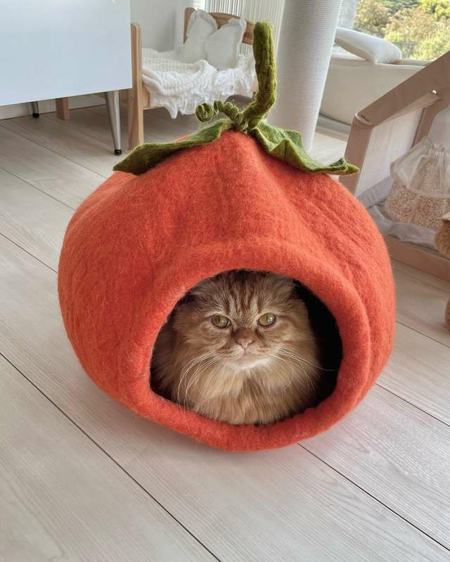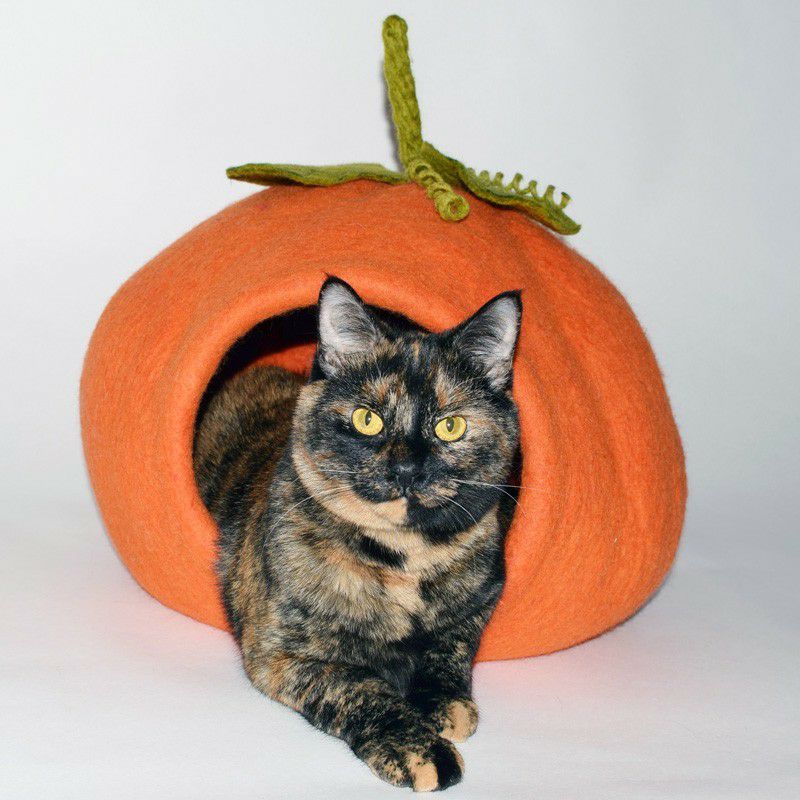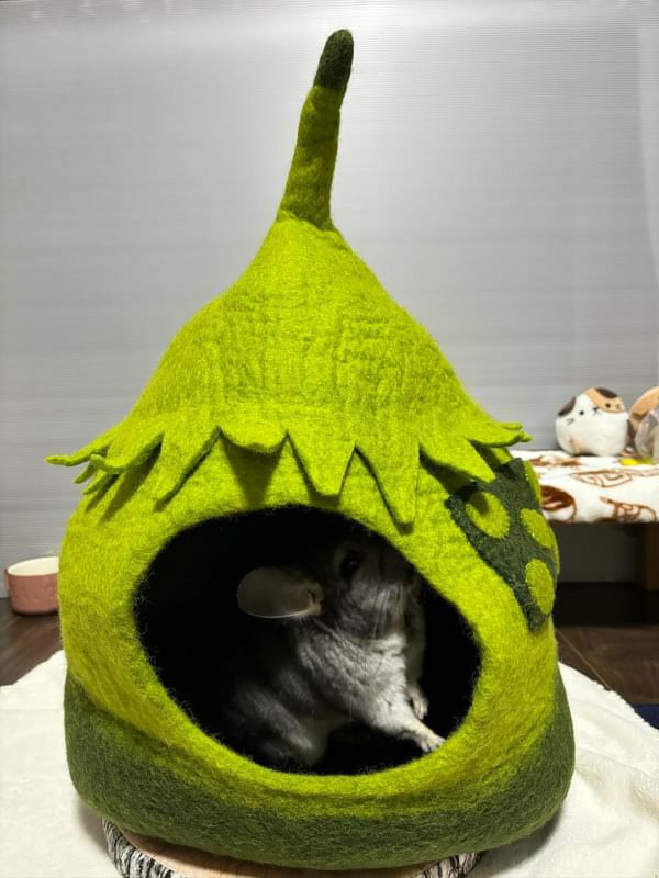 ふんわり包み込む、アメリカ生まれのウール手作りぽかぽかベッド — あなたの猫に極上のぬくもりを!妖精さんのおうちのようなデザイン 猫用 ベッド ダルマドッグカルマキャット フェアリーハウスケイブ グリーン