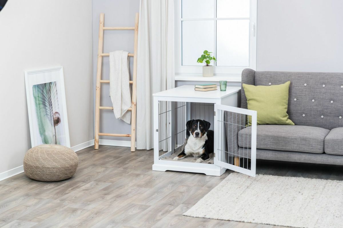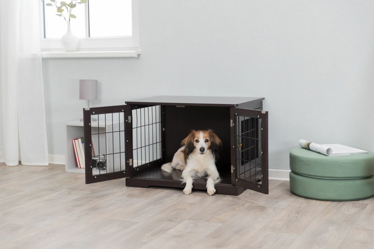 クラシックな家具デザインで、インテリアにも馴染むペット用クレート兼サイドテーブル 犬用 ケージ TRIXIE トリクシー ウッド&ワイヤーペットクレート Mサイズ