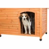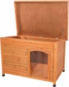 ドイツの有名ブランド!トリクシーは世界中で販売されている人気ブランドです。独立気泡断熱材と付属のプラスチック製ドアフラップがわんちゃんのための最高の屋外保護を提供します。頑丈な松素材を使用することでこのシェルターが非常に少ないメンテナンスで長年の使用に耐えることを意味します。利点には、内側と外側の両方に魅力的な防水仕上げが施されているほか、外気に強いドラフトとグルーブがあります。平らなヒンジ付き屋根は複合屋根板で覆われており、ロッキングアームを使用して支えにして開くことができ、通気性が向上し、掃除も簡単です。調節可能な、非常に高いプラスチック製の先端の足により、平らでない地面で家を水平にすることができ、その下の余分な循環も提供します。これにより、夏は床が涼しく、冬は暖かく乾燥します簡単に掃除できるように取り外し可能な床も備えています。寸法:116.8 x 81.3 x78.7cm。重量:523.6kg。ドアフラップ付き