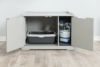 MDFでできた横型の 屋内でのペットハウスまたは猫用キャットトイレクローゼットとしてもお使いいただけるキャットホームができました。 インテリアデザインにマッチするクラシックな家具のインテリアで猫ちゃんのトイレを隠す非常にエレガントな方法としてお使いいただけます。 屋内ペットハウスや猫用トイレボックスとして使用できます 入口エリアにリッターキャッチャーを設置 入口は右側または左側に選択可能 簡単に掃除できるように広いドア開口部を設けています。 標準的な大型のトイレボックスや小さなペットベッドに適しています。 正面のドアはシンプルなマグネットで閉じるシステムです。※画像のトイレやベッドなどは一例で実際にはついていません。 サイズ:W75×D53×H51cm
