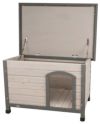 ヨーロッパで有名なドイツTRIXIEの中でも最も人気のある犬小屋にニューカラーが新登場!つや消し松製の天蓋付きドッグハウスです。ミネラルサーフェス屋根用フェルト。屋根に蝶番が付いているので屋根を上に大きく開くことができますのでお掃除も簡単です。