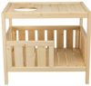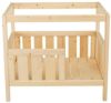 小型犬ちゃんと猫ちゃん用に設計されたインドアホームです。小さなペット用のベッドとラウンジのプラットフォーム。DIYで塗装することもできます。天井部分は取り外しできて、取り付けた時でも頭を出せるホール付き。艶をかけられた頑丈で持続可能な松でできています。エコとペットにやさしいウォーターベースのステインで処理しています。