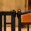 ※【Carlson】特許が取られたペット・ドアがついたゲート!新発売のメタルゲートです。 オートクロージングウォークスルー・ドアを特徴とします。 スタイリッシュで機能的なゲートは、全スチール構造で作られ、自動クローズドドアを備えています。手がいっぱいでも閉じるとゲートが後ろ自動で閉じます。 ゲートに25.4×17.8cmのスモールドアを備えているので、小さなペットが通り抜け、ゲート自体はそのまま閉じた状態で使用できるため、便利です。 取り付ける際はカベに穴をあける必要はありません。プレッシャーマウントシステムは取り付けを簡単にするために突っ張り棒対応の金具になっています。ゲートを延長可能なエクステンションでは77.5から95cmの開口部にフィットします。 カラー:チェリーウッドアクセントのブラック仕上げ 開口部77.5から95cm高さ71cm 自動クローズ扉 便利なウォークスルーデザイン 小さなペットを通すための25.4×17.8cmのスモールドア備えています圧力マウント(突っ張り金具)を使用して簡単にセットアップできます。 10cmのエクステンション付属