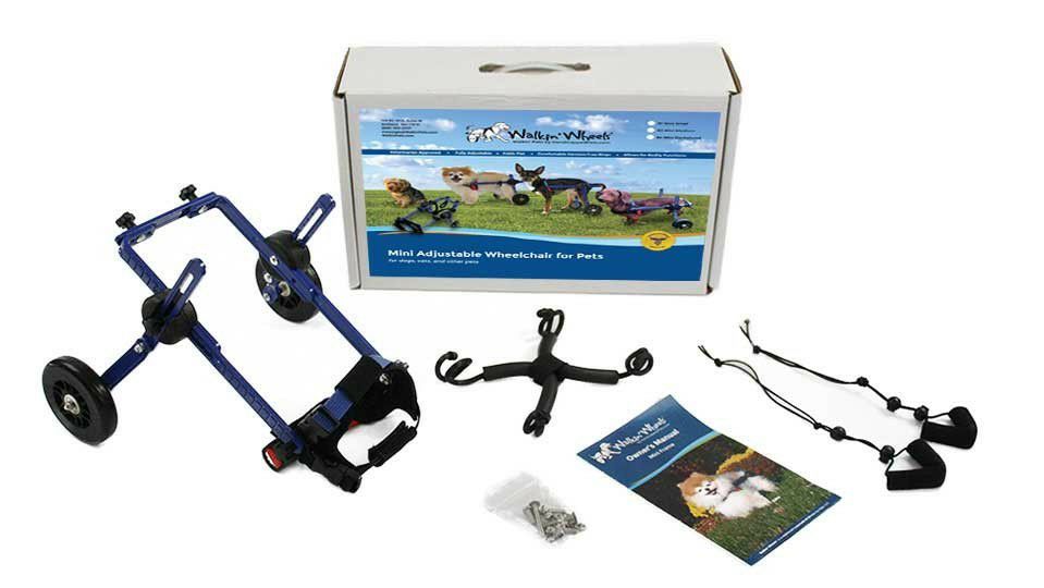耐久性と軽量性を兼ね備えた押し出しアルミ製の車椅子フレームとウレタンホイール車椅子! 犬用 車いす 小型犬用車椅子 ウォーキンホイールズ ドッグホイールチェア ミニB3 ブルー 10cmホイール 車椅子