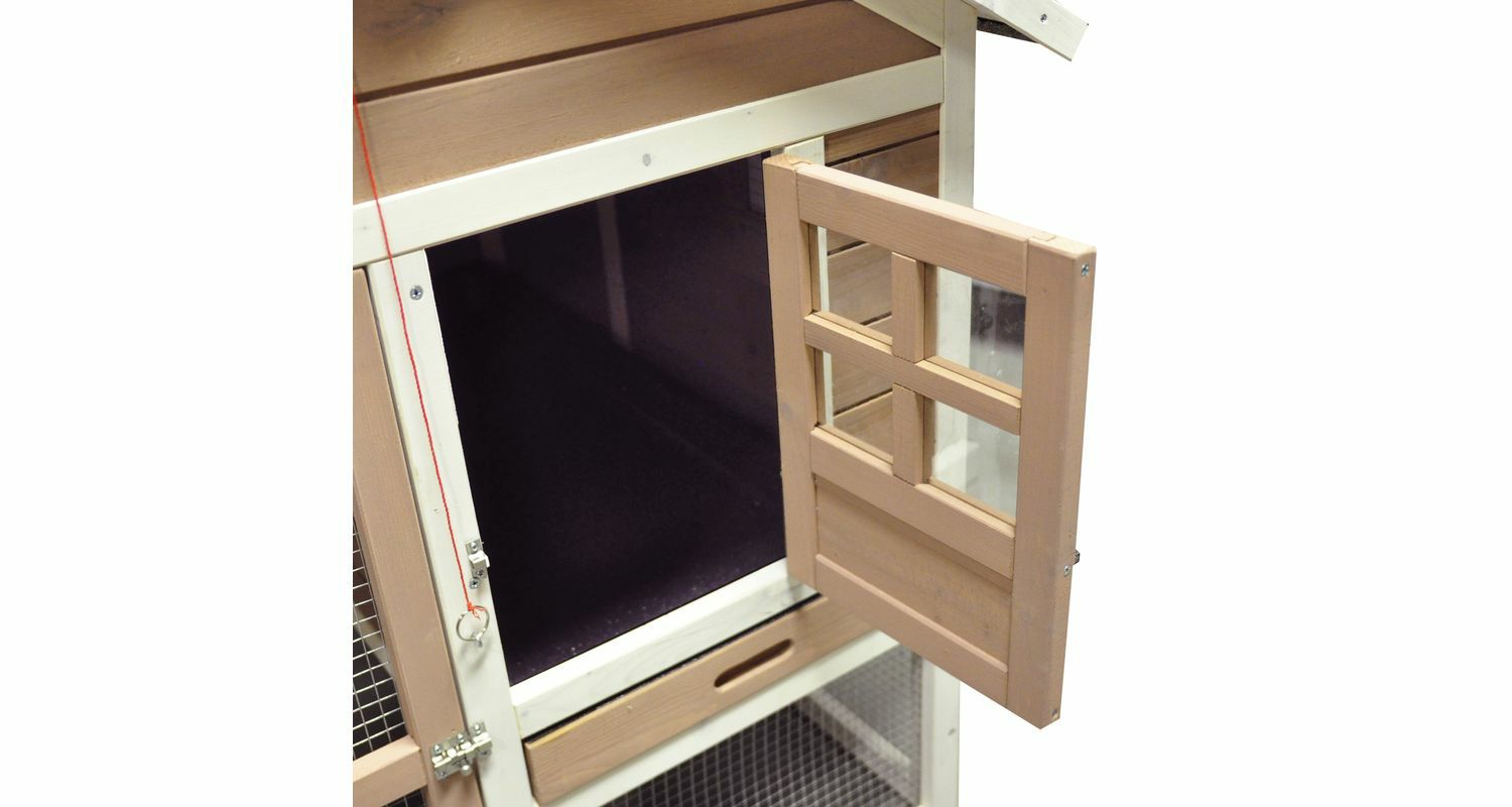 ※同梱不可ほぼ立方体のかたちをした珍しいデザインの2階建てラビットケージです。屋外での使用で悪天候でもケージが守られるように屋根の部分は防水性のアスファルト屋根になっております。1階部分は広々とお使いいただけるサークルがついていて天気のいい日はみんなでお外でいっぱい遊べます。雨の日でも小屋の下の部分は雨から守られているので雨の日もお外で遊べます。ケージの部分は引き出し式でお掃除も簡単。サークルに張った網も丈夫で目が細かいので外敵に襲われる心配もありません。 正面のドアと小屋の正面のドアにはしっかりとしたロックがついています。 小屋の側面いもスライド式の窓がついているので換気も十分です。 正面にあるリング付きのひもで中の小屋のドアをオープンしたり締めたりできます。 お外で雨が降っても大丈夫なように小屋自体を高くする上げ足ゴムがついています。 サイズ105 x 102 x 110 cm
