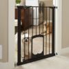1953年から人とペットのための商品を作っているメイドインUSAブランド!ノースステイツ初のスモールドア付ペットゲートが新登場です。Tall Pet gate Passageは、あなたのペットを安全な場所に保管しておき、簡単なプッシュでしっかりと簡単に閉まります。このヘビーデューティースチールゲートの色は美しいマットブロンズで家のインテリアにもばっちり合うカラーです。。このペットゲートには、自由にスイングする専用の小さなスモールドア(24x 20.3cm)があり、小さいわんちゃんや猫ちゃんならゲートをオープンせずにこのドアだけでペットが自由に出入りできるようになっています。スモールドア自体も特許取得のグリップ・アンド・ツイスト・ラッチロックでロックできますので使わないときはロック、使用するときはスイングさせることができるので安心してご利用いただけます。子犬や複数のペットがいる世帯に最適です。 このペットゲートの主な特長は、あなたとあなたのペットが簡単に通り抜けることができるように、幅広い53.3cmのドア開口部を備えています。 このペットゲートの取り付けには、テンションノブ(突っ張り棒金具)を使用してゲートを固定します。それは含まれている2つのエクステンションを使用して75.6最大99cmの幅の様々なドアの底にあるスイングコントロールレバーは、ゲートを一方向または両方向にスイングさせることができます。大きなハンドルのデザインは、快適なグリップのためにあなたの手のひらに簡単に収まります。 部屋の開口部または出入口に合うサイズで、91.4cmの高さがあります。これよりも大きい場所に取り付けたい場合は別売りの15cmと30.5cmのエクステンションを使用して、ゲートのサイズをカスタマイズできます。サイズ:幅75.6から99cm高さ91.4cm