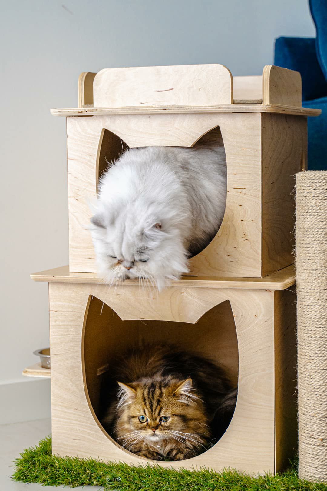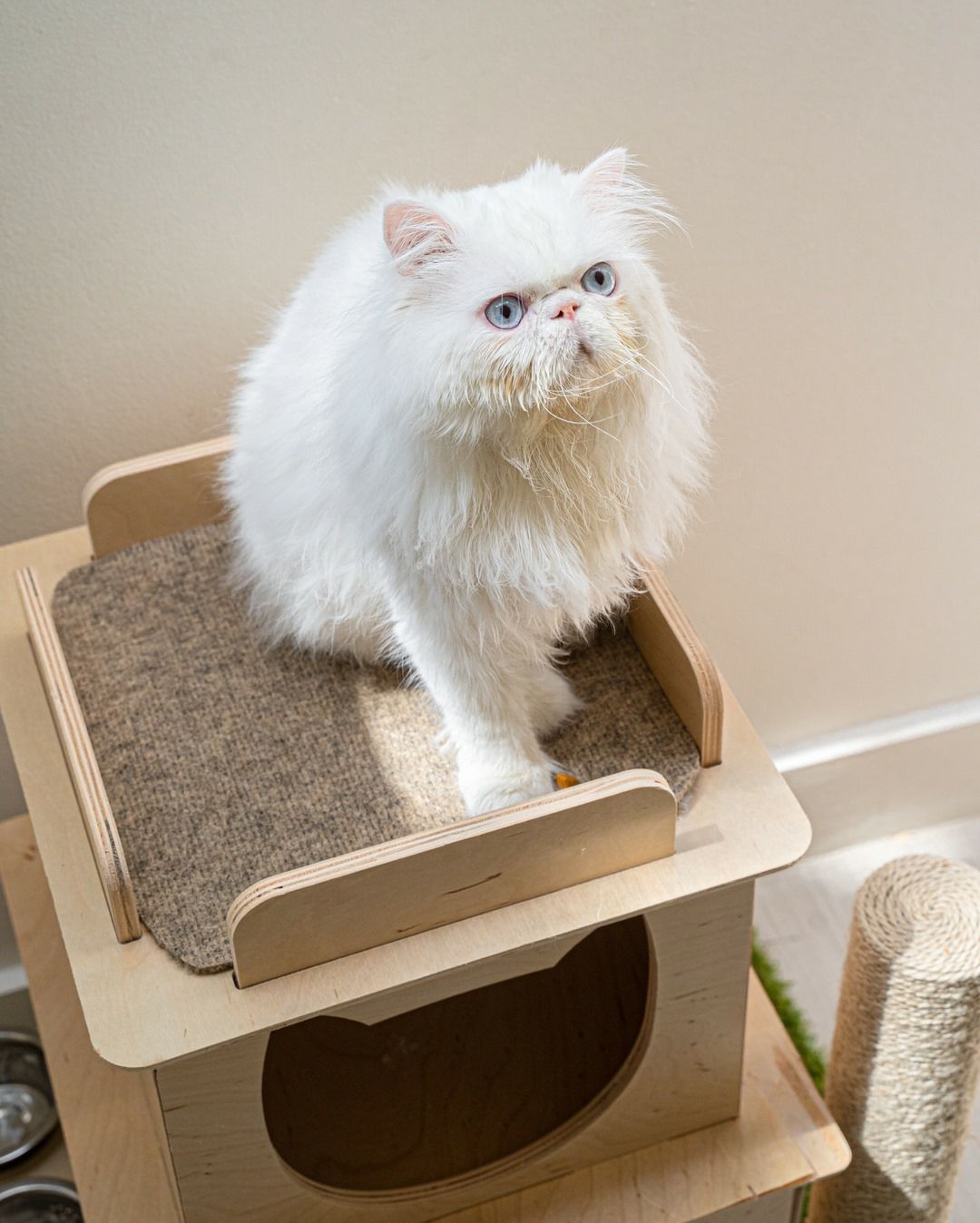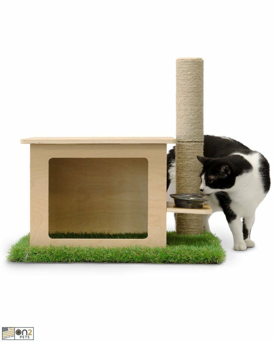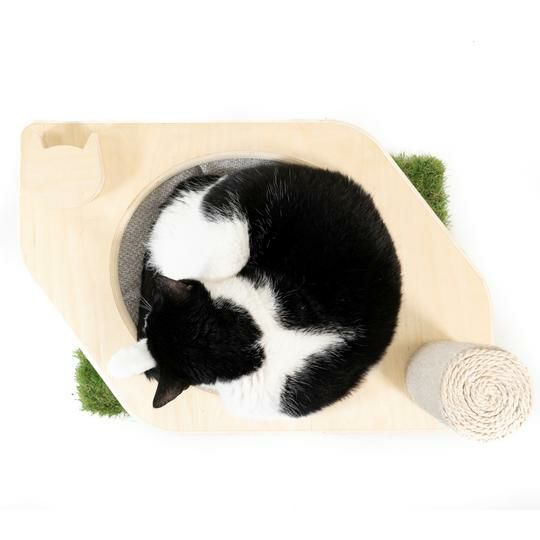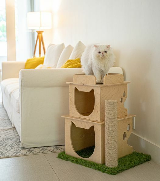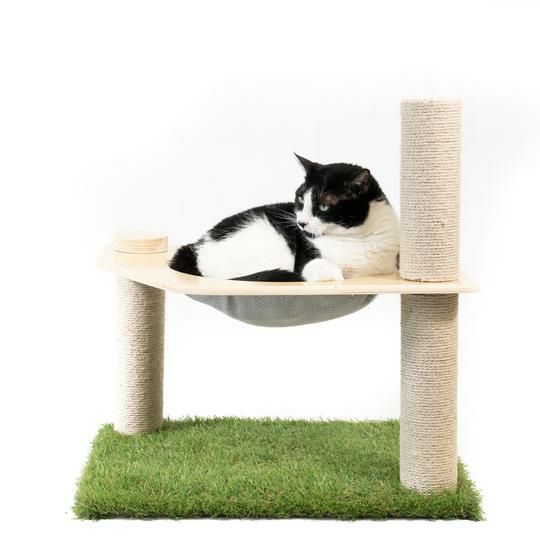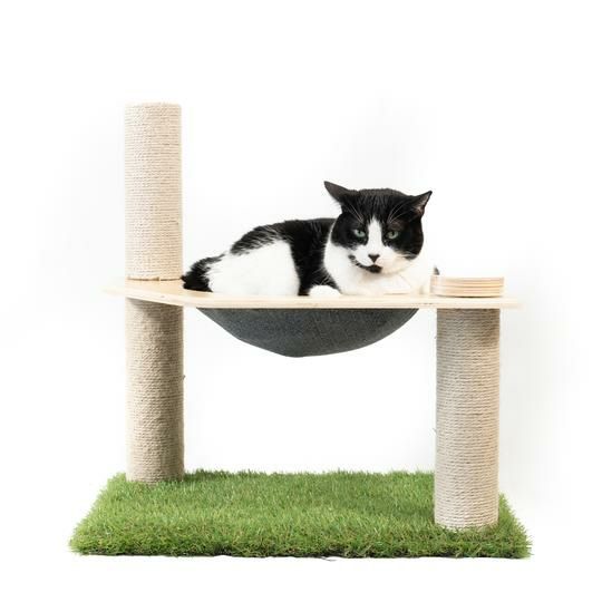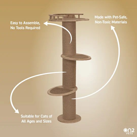 リビングにマッチしながら安全に猫ちゃんに室内で究極のアウトドアクライミング体験を提供するために無毒な素材でのみ作られたメイドインUSAのキャットタワーです。