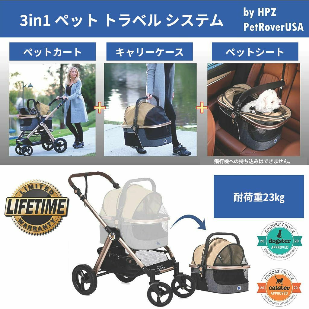 アメリカの有名ペットカートブランド!HPZ PET ROVERの画期的なデザインの対面式3イン1ペットカート。