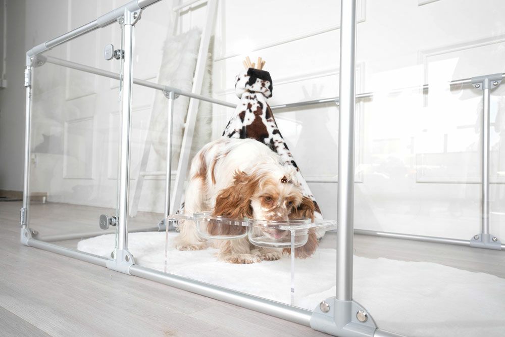 エンクロージャーは通常のクレートよりもはるかに大きく、360度のビューがあります。 心地よいデザインは、アクリルガラスの引き戸によって、家の中心部でより有利な配置につながるので、犬は動き回ったり伸びたりするスペースを楽しみながら、面白くて遮るもののない景色を眺めることができます。別売りのコネクタやプレートでケージサイズを大きくすることができます。 あなたとあなたのペットだけの特別なオリジナルのケージを作ってください。