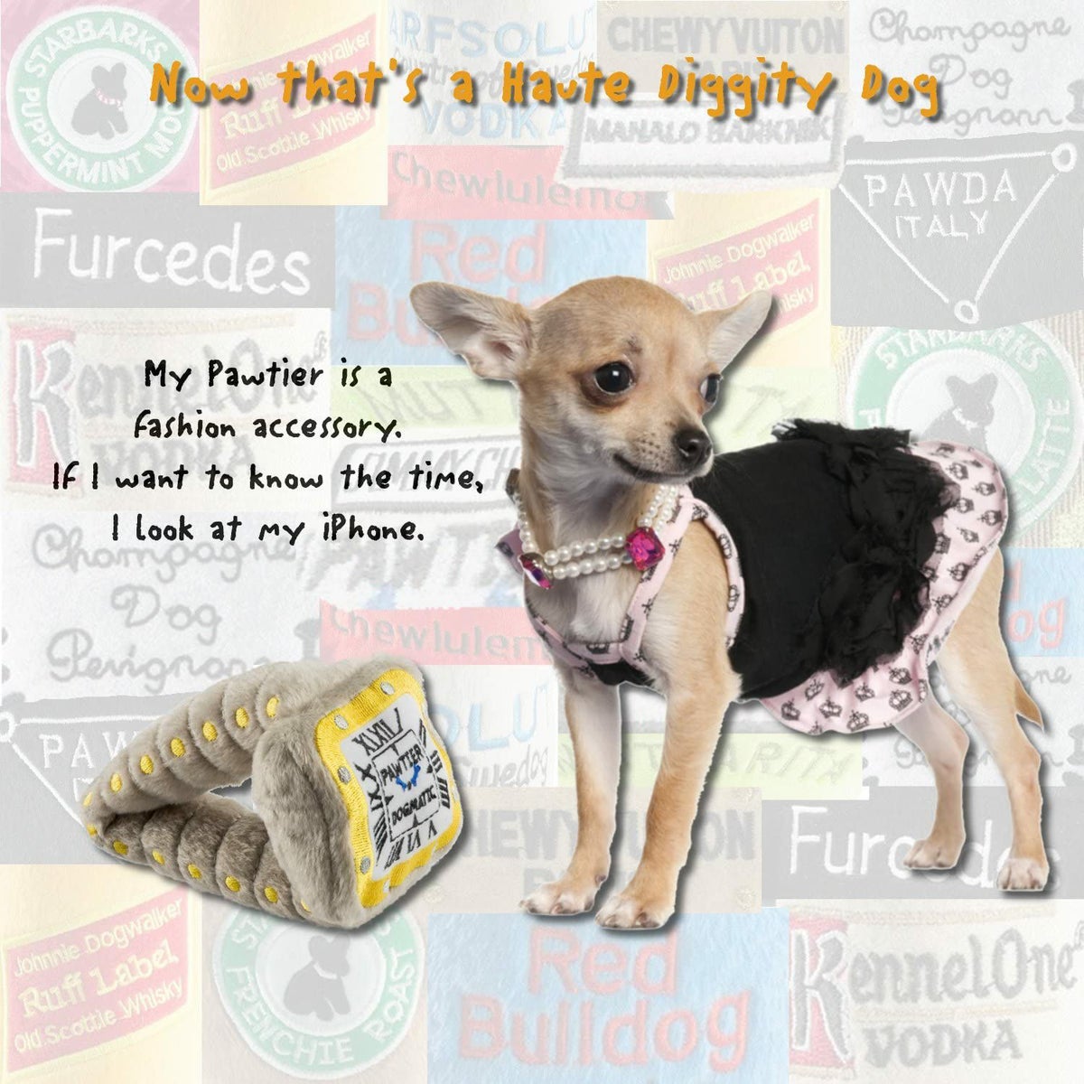 米国や世界中の最高級のペットブティックや専門店で販売されているパロディトイ!2004年に発売され、すぐにペットの世界を席巻したHaute Diggity Dogです。
