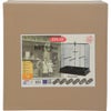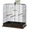 底網もついています。鳥かご上部中央にはスイングがついていて止まり木が3個、ガラスのエサ入れが2個付いています。