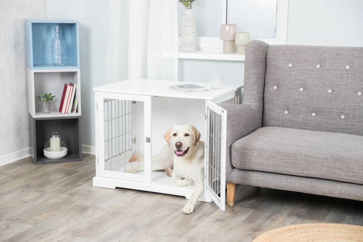 クラシックな家具デザインで、インテリアにも馴染むペット用クレート兼サイドテーブル 犬用 ケージ TRIXIE トリクシー ウッド&ワイヤーペットクレート Sサイズ