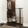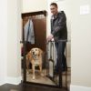 1953年から人とペットのための商品を作っているメイドインUSAブランド!ノースステイツ初のスモールドア付ペットゲートが新登場です。Tall Pet gate Passageは、あなたのペットを安全な場所に保管しておき、簡単なプッシュでしっかりと簡単に閉まります。このヘビーデューティースチールゲートの色は美しいマットブロンズで家のインテリアにもばっちり合うカラーです。。このペットゲートには、自由にスイングする専用の小さなスモールドア(24x 20.3cm)があり、小さいわんちゃんや猫ちゃんならゲートをオープンせずにこのドアだけでペットが自由に出入りできるようになっています。スモールドア自体も特許取得のグリップ・アンド・ツイスト・ラッチロックでロックできますので使わないときはロック、使用するときはスイングさせることができるので安心してご利用いただけます。子犬や複数のペットがいる世帯に最適です。 このペットゲートの主な特長は、あなたとあなたのペットが簡単に通り抜けることができるように、幅広い53.3cmのドア開口部を備えています。 このペットゲートの取り付けには、テンションノブ(突っ張り棒金具)を使用してゲートを固定します。それは含まれている2つのエクステンションを使用して75.6最大99cmの幅の様々なドアの底にあるスイングコントロールレバーは、ゲートを一方向または両方向にスイングさせることができます。大きなハンドルのデザインは、快適なグリップのためにあなたの手のひらに簡単に収まります。 部屋の開口部または出入口に合うサイズで、76.2cmの高さがあります。これよりも大きい場所に取り付けたい場合は別売りの15cmと30.5cmのエクステンションを使用して、ゲートのサイズをカスタマイズできます。サイズ:幅75.6から99cm高さ76.2cm