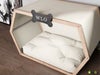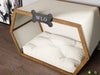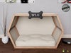 フレームと壁面がウッドとテントカバーのコントラストでできていてペットがゆったりとお休みできるように独特のデザインで作られています。,