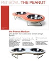 サンフランシスコからやってきた遊び心たっぷりなペット用食器が登場! 猫と小型犬用に特別に設計された高架ペットボウルです。シンプルで軽量、ほぼすべてのインテリアにフィットします。 本体はアルミニウムフレーム及びボウルは、ステンレスで作られています。 ピーナッツのようなかわいらしいフォルムが印象的なペットボウルです。 サイズ 38cm x 21.6cm x 6.8 cm ボウルの大きさ One bowl for Water size 5.5" (14cm)