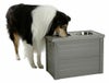 アメリカニューエイジペットは株式会社ALLFORWANが日本総輸入販売代理になっているブランドです。日本メーカーの商品ではほとんどない大型犬や超大型犬やうさぎ小屋などに特化したオリジナルのEcoFlexというエコ素材を使用したペットメーカー! ecoFlexとはリサイクルポリマーと木をブレンドして作られたエコ素材で、その特徴は全天候型(気温と湿度の変化に対応)、腐敗しにくい(腐りにくい)虫が寄ってきにくい、常に形状が安定しているという特徴があります。またねじれにくい、曲がりにくい、ひびが入りにくいなど様々な特徴があり、中のわんちゃんを傷つけることがありません。 エサ入れなどのストレージとフードボウルスタンドがセットになったダブルダイナーです。ecoFlexでできています。大型犬ちゃんサイズの餌台、餌入れです。普段はそのまま食器台として大型犬ちゃんなどの首の高さに負担がかからないような高さになっています。 ストレージ自体におもちゃやドッグフードなどを収納でいるボックスになっていてスライドしてフードボウルを取りつけて側面のロックでしっかりと取り付けできます。 フードボウル自体も3段階に高さを調節できる可変足つきで、わんちゃんの体の高さに合わせて足を折りたたむことによって3段階に調節できます。 サイズ:39.6 H x 54 W x 30 Dcm 32OZのボウルが2個