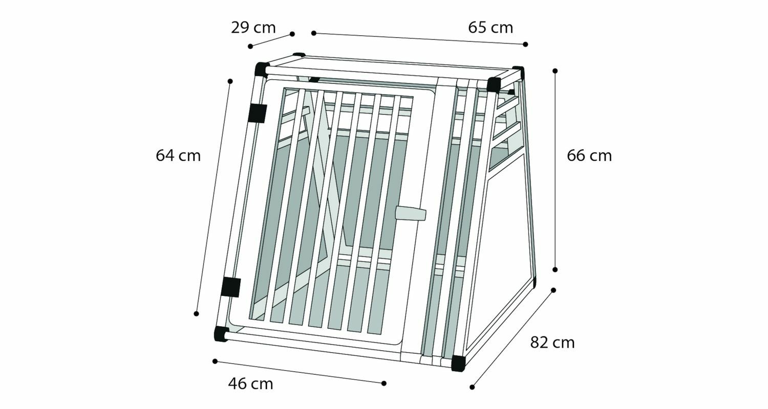 FLAMINGOPETのおしゃれなドッグケージです! 世界50か国で販売されている有名ブランド。 丈夫なアルミでできた1つの部屋で使用できるドッグケージです。 ドア部分はロック可能です。 ドアフレームのゴム製ノブ。 自動車のドライブケージとしても使用できます。 サイズ幅65×奥行82×高さ66cm ドアのサイズ46×64cm 天井部分奥行29cm