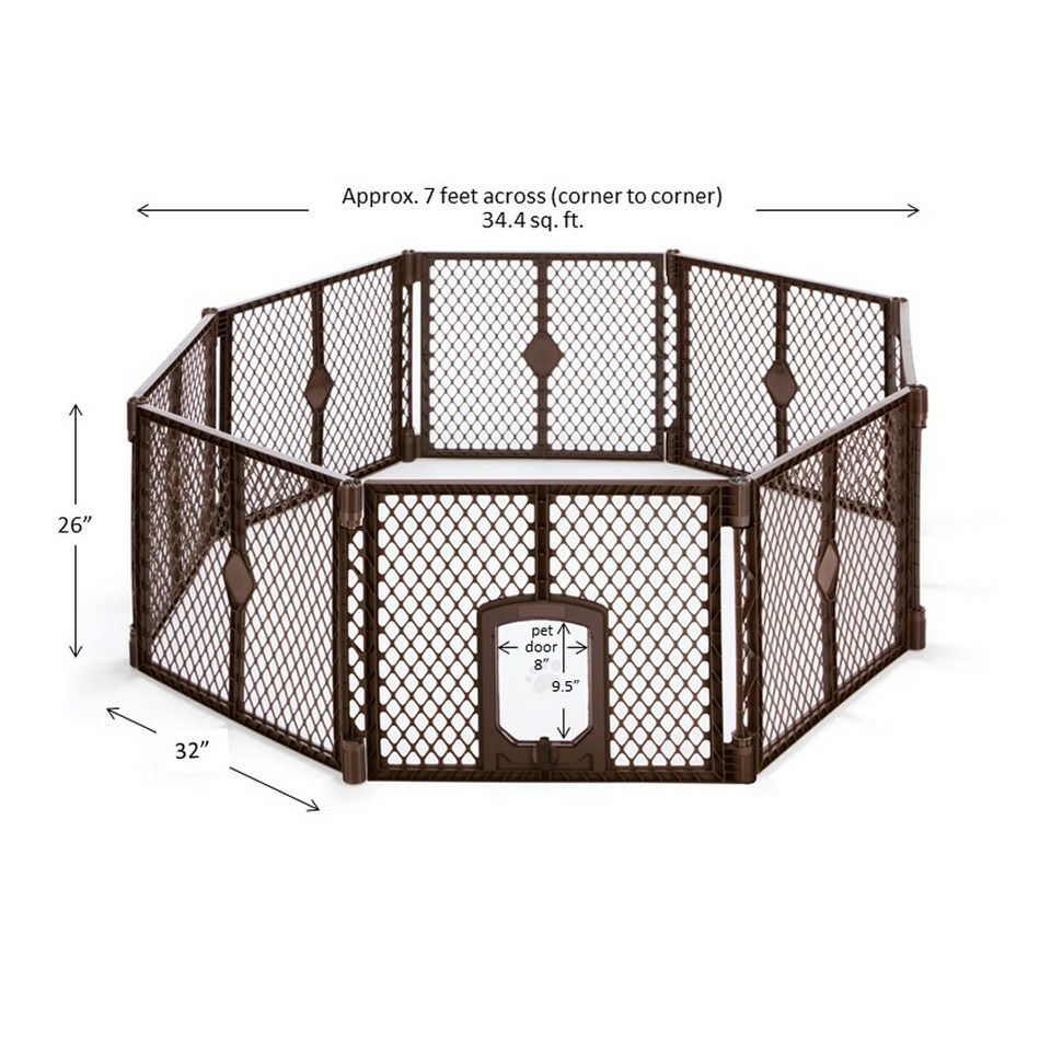 ※同梱不可1953年から人とペットのための商品を作っているメイドインUSAブランド! 室内でも屋外でも使用できる軽量わんちゃん用サークルです。 8枚パネルのプラスチックサークルです。 オープンドアはないですがわんちゃん専用のドッグドアがついています。 用途に合わせて画像のように四角にしたりその都度大きさを変更できます。 使用しないときは一枚に畳んで重ねることができるので保管場所も取りません。