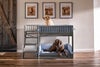 ※ベッドのデザインが紐のついていないほうのベッドになります。。日本メーカーの商品ではほとんどない大型犬や超大型犬やうさぎ小屋などに特化したオリジナルのEcoFlexというエコ素材を使用したペットメーカー! ecoFlexとはリサイクルポリマーと木をブレンドして作られたエコ素材で、その特徴は全天候型(気温と湿度の変化に対応)、腐敗しにくい(腐りにくい)虫が寄ってきにくい、常に形状が安定しているという特徴があります。またねじれにくい、曲がりにくい、ひびが入りにくいなど様々な特徴があり、中のわんちゃんを傷つけることがありません。2段ベッド仕様のペットベッドです。91.5cmある高さのはしごを登って上と下でそれぞれわんちゃんがゆっくり休めるようになっている大型ベッドです。クッションは取り外し可能です。 31.8kgまでのわんちゃんに使用可能です。 サイズL145×D69×H92cm