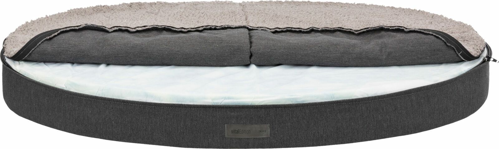 3 レイヤー システム: コンフォート フォーム/粘弾性フォーム/ポリエステル フリースの詰め物、12 ~ 14 cm (形状記憶効果)があるので高齢犬などが長い間寝ても体に負担がいかないようになっています。