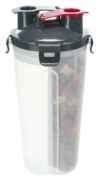 お外に持ち歩くのにも便利なお水とフードを別々に入れて持ち運びできるコンテナ。防水蓋付きの2つの独立したチャンバーがありチャンバーを個別に使用するためのふたの2つの開口部がついています。フック付き、たたむことができるシリコン製ボウルつきなのでお水を飲みたいときやフードを食べたいときは外して使用でいます。サイズ2 × 0.35 l/直径 11 × 23 cm