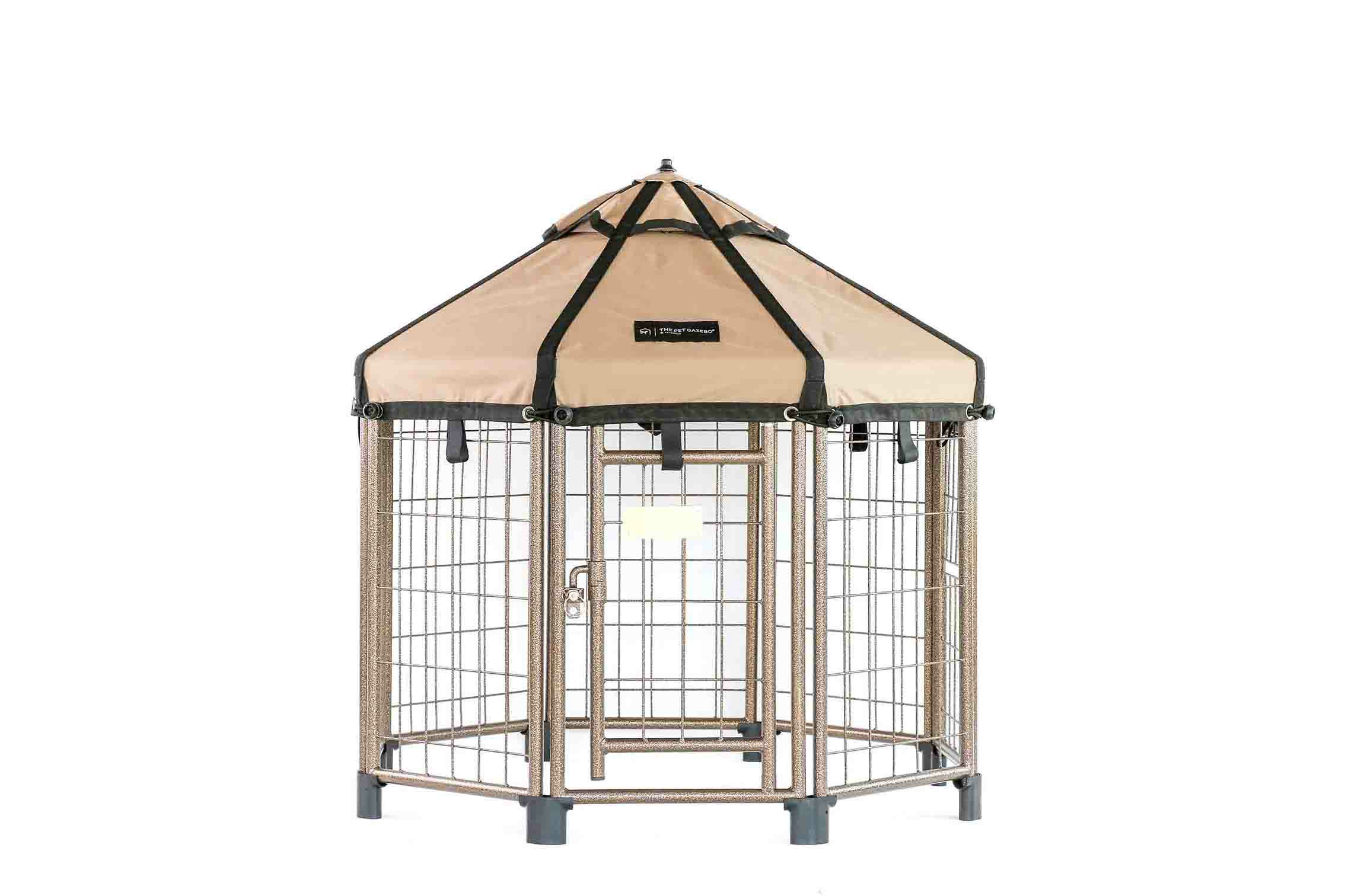 122cmのペット ガゼボ ユニットのサイズは、床から屋根フレームの頂点まで幅 122×122cmです。 各パネルのサイズは幅45.7cm x 高さ76cmです。