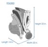 サイズ: L 71 W 50.8 H 101.6cm。折りたたみ時: L 35.6 W 66 H 56cm。キャリーバッグサイズ:閉じているとき: L 33 W33cm。開いているとき: L 68.5 W 33cm。本体重量:合計 7kg。耐荷重:20kgまで