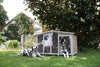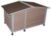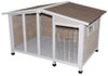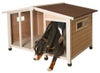 1962年からペット用品を製造するドイツのペット用品ブランド。プレキシガラス仕様で犬小屋にたくさんの日光を取り入れることができる画期的な超大型犬用犬小屋 ドッグハウスが登場!今まで見たことがない犬小屋の正面の壁をプレキシガラスにすることによって、天気がいい日には太陽の光を十分取り入れることができ、雨の日も木がのように濡れる心配もなく常に視界がクリアなので、わんちゃんも驚くかもしれません。 もちろん防寒もばっちり。ドア部分にも雨や風を防護するビニール扉を標準装備。両サイドには室内の温度を調節するためのスライド小窓がついています。 アスファルト屋根仕様なので全天候型。片側が大きくオープンしますのでお掃除も簡単です。置く場所によって高さを調節できるプラスチックアジャスタブル。至れり尽くせりのプレミアムドッグハウスです。 ドアサイズ:50 x 33 cm 内寸:124 x 75 x 67 cm 外寸:134 x 92 x 82 cm