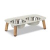 2つのステンレス製ボウルで食事と水をしっかり分け、広いリップと縁のある設計でこぼれた食べ物や水をキャッチします。