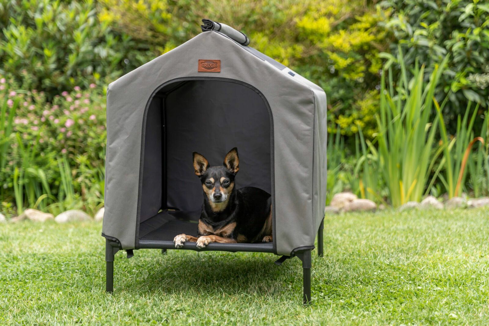 TRIXIEの2-in-1エレベーテッドドッグシェルターで、愛犬に特別な居場所を提供しましょう。