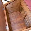 ドイツの有名ブランド!トリクシーは世界中で販売されている人気ブランドです。 艶出しされた松を使っています。 屋根部分は悪天候にも耐えられるようにアスファルト屋根を使用、足があって地面から高さを保つことによって地面からの湿気と寒さを防いで小屋の中で快適に過ごせるようにします。 テラス付きの犬小屋です。 屋根は半分オープンにできます。