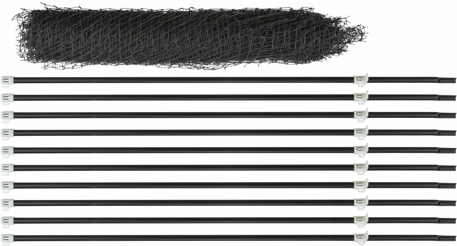 【English product description】 for temporarily fencing in the dog in free areas, e.g. in the garden or on a camping site for flexible use 10 poles at 1 m length each; 20 cm tip of this for secure hold sturdy clips make hooking in the net easy plastic/nylon/iron, powder-coated Item no.: 39539, Measurements: 15 m 【ブランド紹介】
