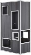 日本メーカーの商品ではほとんどない大型犬や超大型犬やうさぎ小屋などに特化したオリジナルのEcoFlexというエコ素材を使用したペットメーカー!ecoFlexとはリサイクルポリマーと木をブレンドして作られたエコ素材で、その特徴は全天候型(気温と湿度の変化に対応)、腐敗しない(腐らない)虫が寄ってこない、常に形状が安定しているという特徴があります。またねじれない、曲がらない、ひびが入らないなど様々な特徴があり、中の猫ちゃんを傷つけることがありません。猫ちゃんのためのマルチレベルのプレイタワー。 6つのレベルで構成されるECOFLEXキティケースのプレイ構造を複数の猫が楽しむことができます。各レベルは、7.7kgまでの耐荷重を備えた頑丈なECOFLEXで作られています。複数のオープンスペースに簡単に出入りできます。