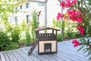 1962年からペット用品を製造するドイツのペット用品ブランド。 ねこカフェなどからも大人気!おしゃれな猫ちゃん用ペットハウスです。 室内でも屋外でもご利用いただける2階建てのネコちゃんハウスです。 1階のハウスでゆっくりお休みできて、天気のいい日は2階のテラスでのんびり日向ぼっこ。。 ホワイト、ベージュ、オレンジのコントラストがかわいいおしゃれな猫ちゃんハウスです。 風や天候に対する透明スラットから作られたカーテンがついています。 カットアウトの測定値23 X18センチメートル 無色保護木材塗装で艶出し 天気防音屋根 屋内でも屋外でもご使用できます。 サイズ:88 x 57 x 77 cmcm 【キャットタワー、キャットファニチャー、プレイボックス、キャットトイ、爪とぎ、スクラッチ、猫おもちゃ】