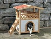 1962年からペット用品を製造するドイツのペット用品ブランド。 ねこカフェなどからも大人気!おしゃれな猫ちゃん用ペットハウスです。 室内でも屋外でもご利用いただける2階建てのネコちゃんハウスです。 1階のハウスでゆっくりお休みできて、天気のいい日は2階のテラスでのんびり日向ぼっこ。。 ホワイト、ベージュ、オレンジのコントラストがかわいいおしゃれな猫ちゃんハウスです。 風や天候に対する透明スラットから作られたカーテンがついています。 カットアウトの測定値23 X18センチメートル 無色保護木材塗装で艶出し 天気防音屋根 屋内でも屋外でもご使用できます。 サイズ:88 x 57 x 77 cmcm 【キャットタワー、キャットファニチャー、プレイボックス、キャットトイ、爪とぎ、スクラッチ、猫おもちゃ】