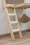 階段部分にはサイザル麻を巻いたポールを採用。登りやすさをサポートするだけでなく、日常的な爪研ぎもしっかり行えます。背面の広いサイザル麻マットも魅力です。