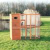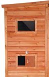 屋外で使用できる大型木製キャットハウスです。環境にやさしいモミノキを材料にして作っています。 スロープで小屋からサークル内に移動します。 目の細かい網で囲まれたサークルなので外敵から猫ちゃんの身を守ります。 サークルには金属のロックがついた大きなドアがついています。 小屋部分にもスライドドアとプラスチック窓がついています。 1階から2階にも上がることができます。 お外で使った時に風で砂などが入らないように入り口や窓にはドアロックがついています。足の部分にプラスチック金具がついて地面より高い位置にあるので熱や寒さからキャットハウス内を保護します。 小屋にも2階部分に大きなロック付きドアがあるのでお掃除も簡単にできます。 2階の窓はプラスチックが入っていて風やほこりから小屋を守ります。お客様組み立て品サイズ:幅195 × 高さ175 × 奥行95 cm 【キャットタワー、キャットファニチャー、プレイボックス、キャットトイ、爪とぎ、スクラッチ、猫おもちゃ】