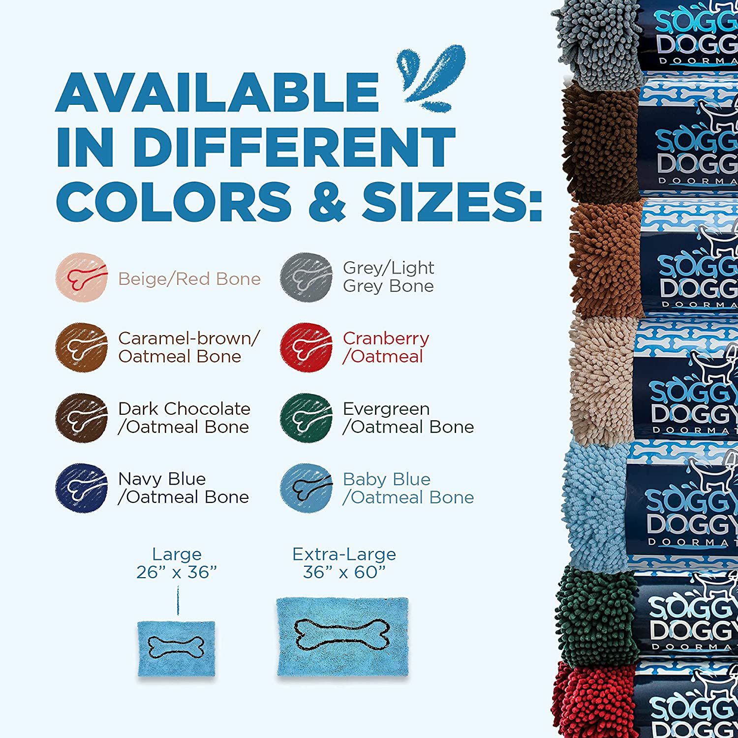 小さな子供が1人のダイバーのセーム革で全身を乾かすのを見てインスピレーションを得ました。何度も実験を重ねた結果、完璧な素材のブレンドはマイクロファイバーのシェニールシャグであることがわかりました。その「ヌードル」繊維は、それを非常に吸収性にするだけでなく、大量の必要のないものを引っ掛けます(ママへの注意:雪のブーツや汚れたクリート、特に砕いたゴムの芝生のフィールドで使用されるものに最適です)。私たちは皆、シャグの吸収性と汚れを捕らえる能力に驚いていました。しかし、何よりも良いのはペットが非常に柔らかい玄関マットに恋をし、彼はそれをベッドとして使うことを主張したほどです!そしてそこから、残りのSoggyDoggy製品のインスピレーションが生まれました。