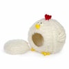 Comfy Chicken の外装は、黄色と赤のアクセントが付いた短い毛むくじゃらの白い生地で覆われています。