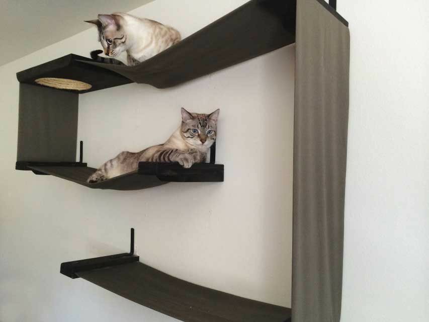 アメリカで人気のおしゃれな壁取り付けキャットタワー 猫用 キャットタワー Catastrophic Creations 壁取り付け用 ファブリックキャットメイズ オニキスチャコールグレーブラック キャットステップ キャットラダー キャットウォーク