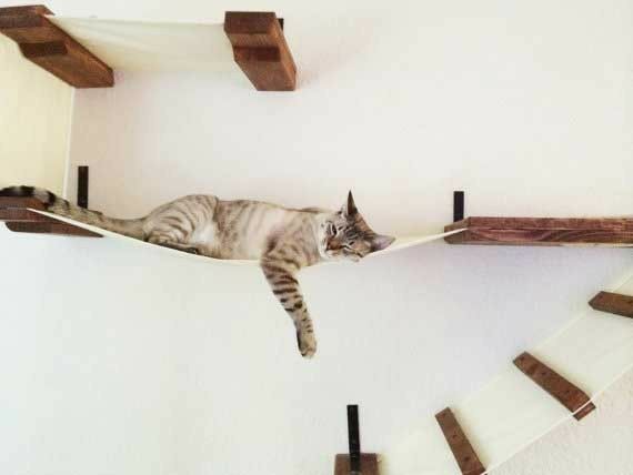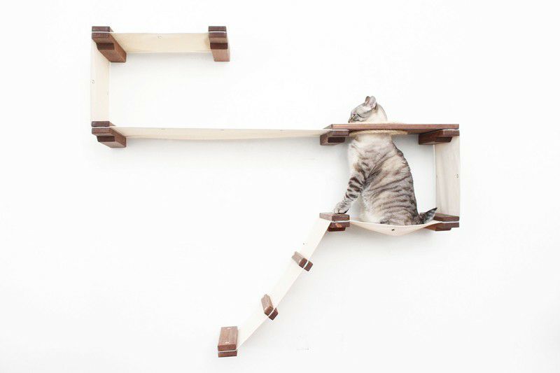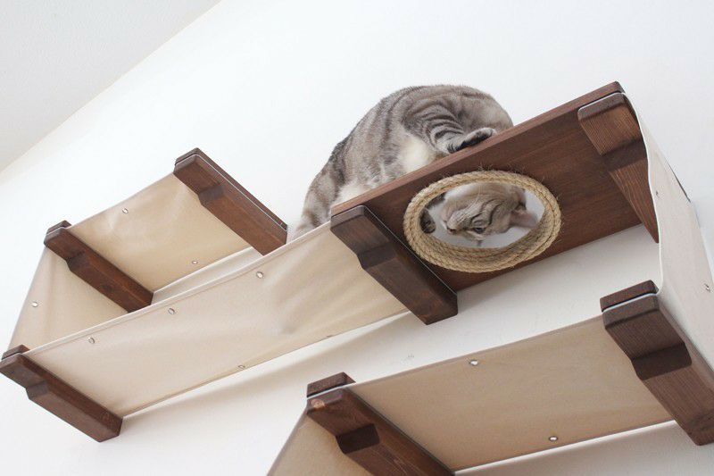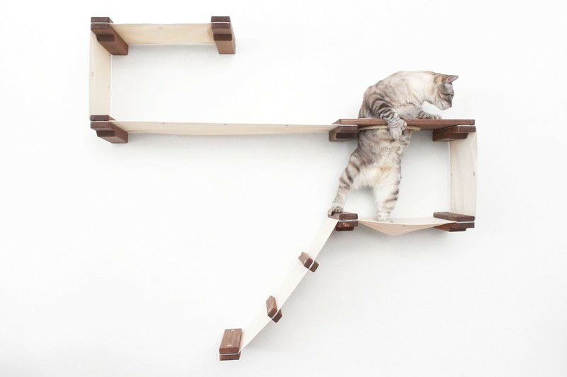アメリカで人気のおしゃれな壁取り付けキャットタワー 猫用 キャットタワー Catastrophic Creations 壁取り付け用 ファブリックキャットメイズ チェストナットナチュラルチェストナット キャットステップ キャットラダー キャットウォーク