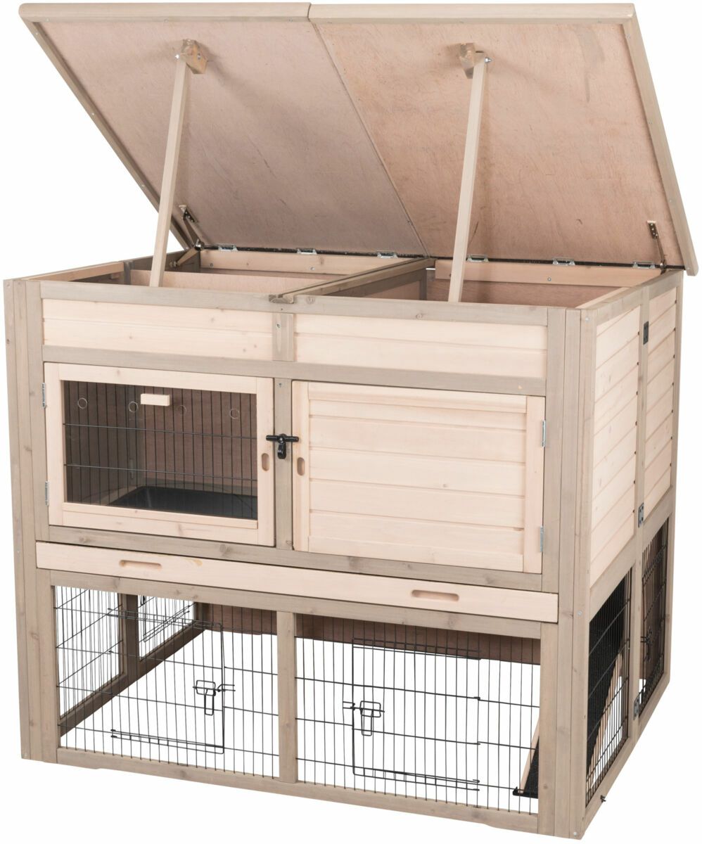 - ● かじっても安心!天然木のハウス: ドイツ「TRIXIE」の木製シリーズは、うさぎが「かじる」本能を大切に、安全な素材で作られています。ログハウスのような見た目は、ケージ内のインテリアとしても最適です。
