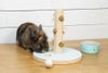 タワーや土台のボールの下におやつやフードを隠して探しながらお食事を楽しめるグッズ。