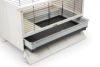 屋内仕様のラビットケージです。ホワイトのナチュラルカラーが学校や幼稚園などからも人気です。 天井部分が大きく開きますので出入りやお掃除も簡単です。正面のロックを外すと大きめのプラスチックの引き出しがついています。高さが深いので中でうさぎちゃんが遊んでもなかなか外に散らばらないでしょう。足がついていて地面から高さもあるので適度な温度を保ちつつ室内で快適に過ごせます。 サイズ:100 x 64,5 x 72 cm