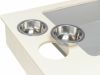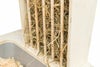 2つのステンレス製ボウルと干し草ラック付きで開いている穴にニンジンや白菜などを差し込むことができます