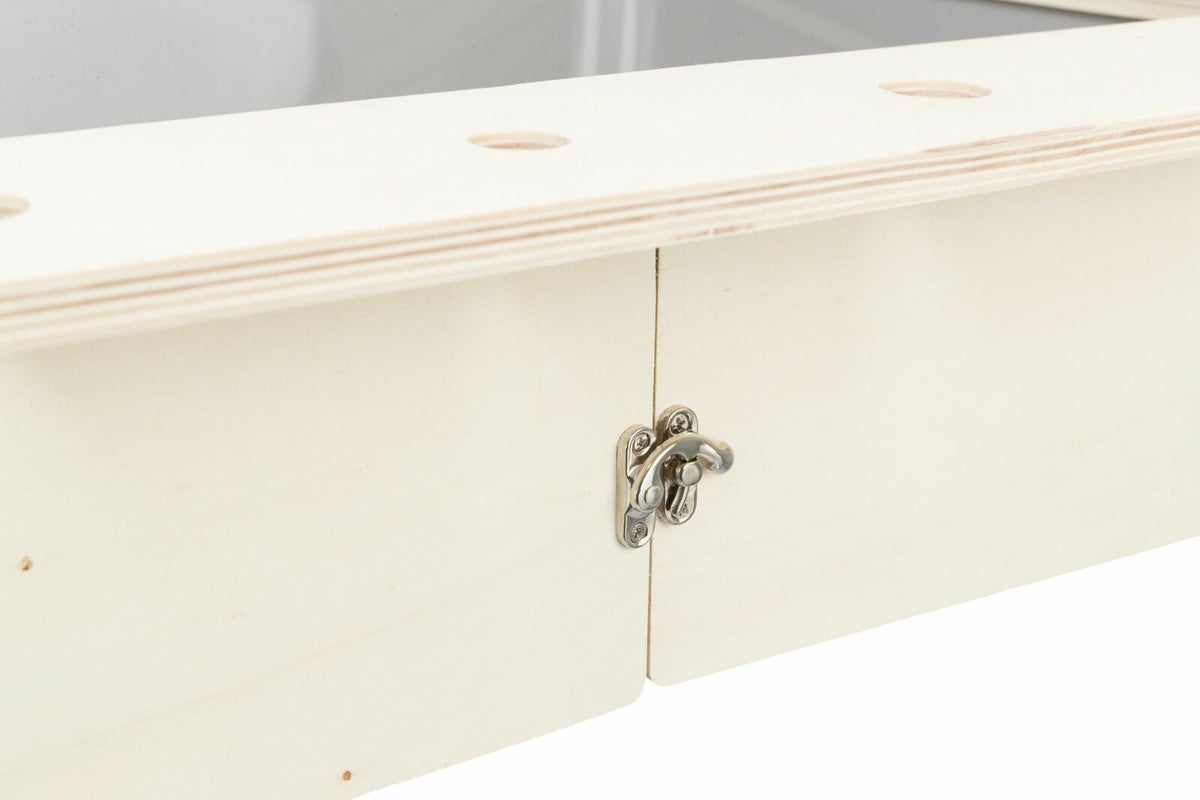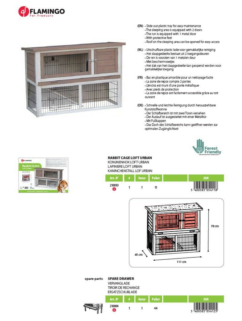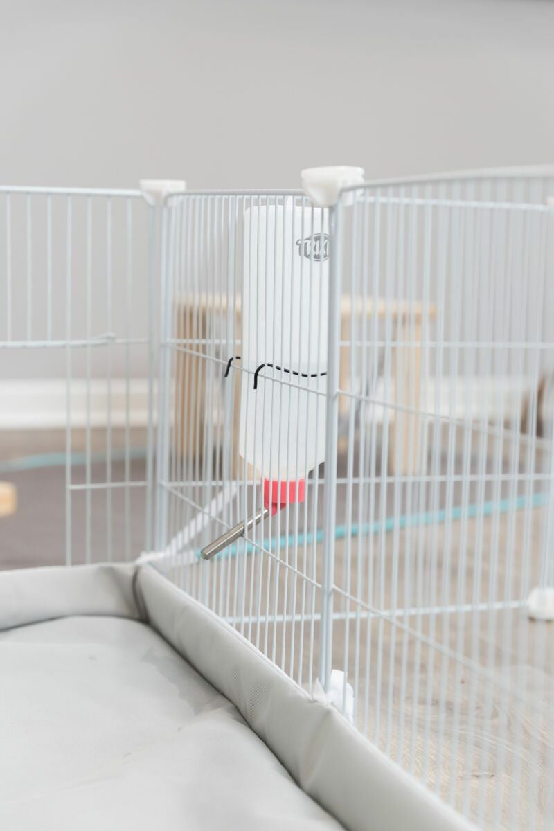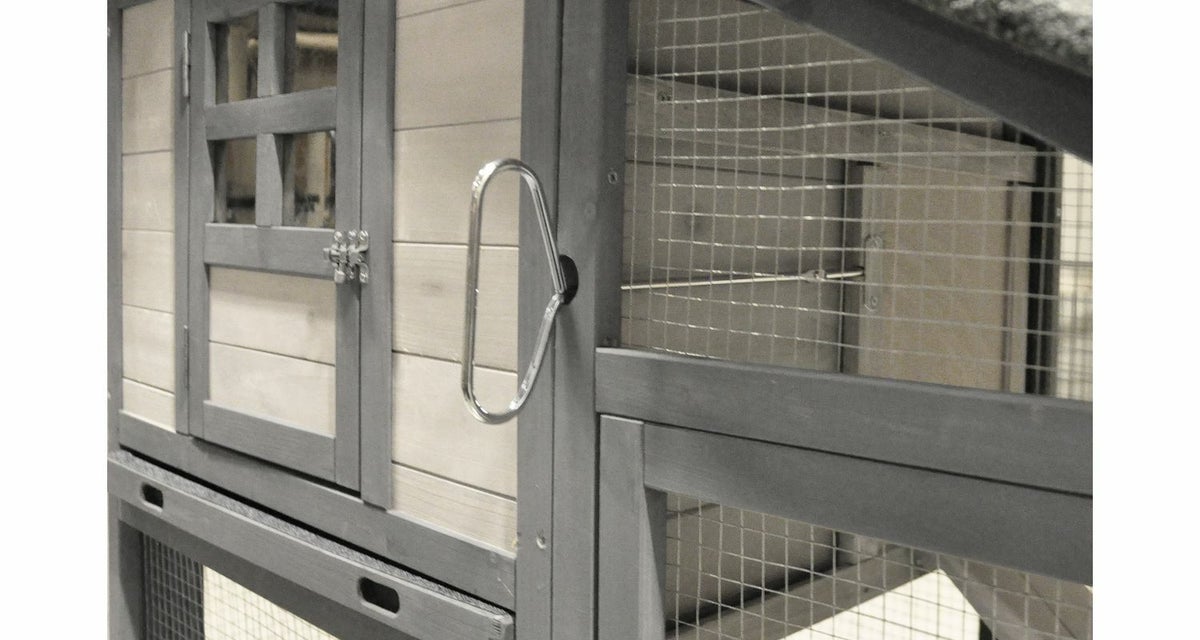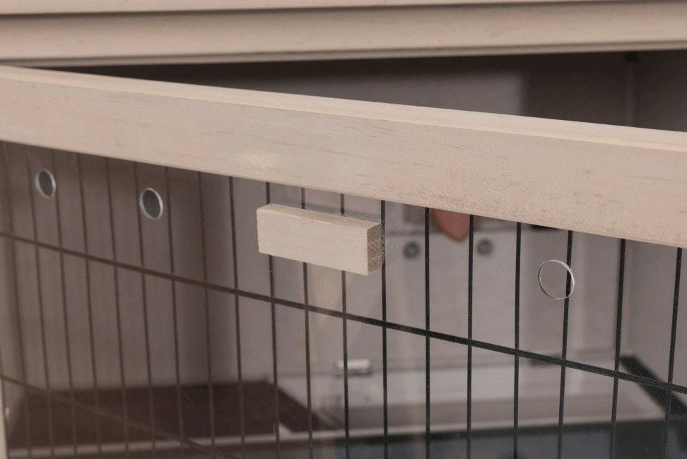 • ● 引き出し式ディープトレイ: 牧草やチップが飛び散りにくい「深型」のトレイを採用。引き出し式なら、ウサギを外に出さなくてもサッとお掃除が完了します。