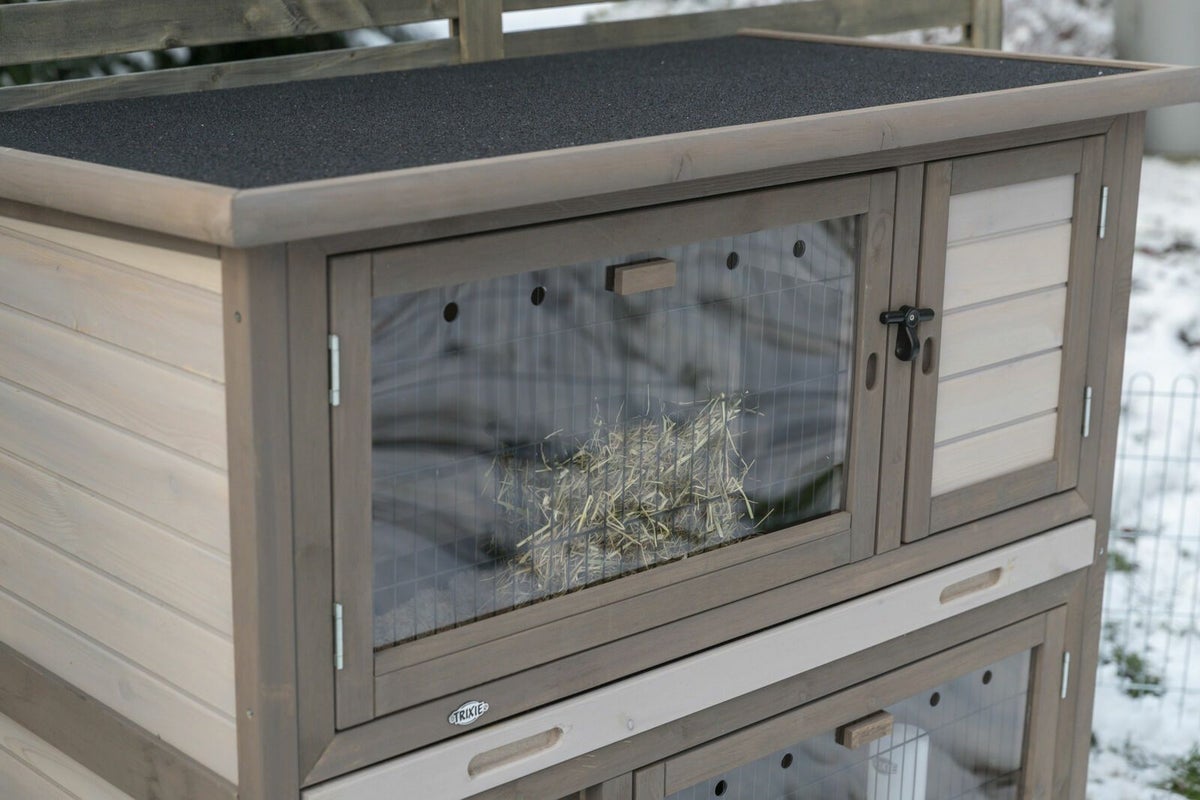 ウサギが足を伸ばして横になれる十分な横幅。段差が少なく、シニア期に入っても安心して使える設計です。海外製ならではの奥行きのあるサイズが人気です。